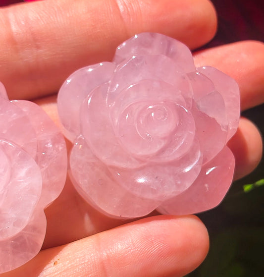 Adorable Pink Rose Quartz Rose Carving