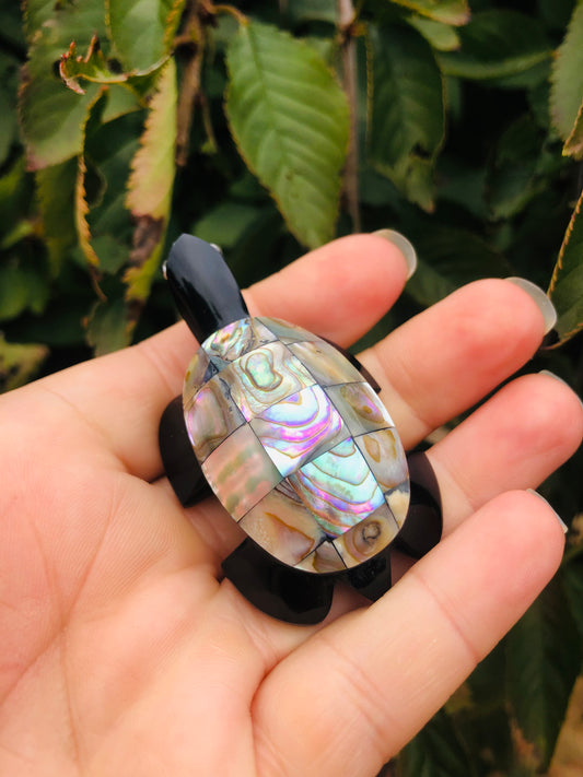 Precious Abalone & Black Obsidian Turtle Carving