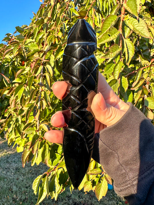 Hand Carved Black Obsidian Snake Dagger